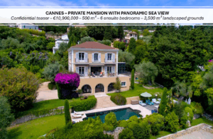 👉 Among recent opportunities, FRELA.law has launched a confidential teaser for an exceptional private mansion in Cannes, featuring panoramic sea views, 500 m² of living space, 6 ensuite bedrooms and landscaped grounds of over 3,500 m².